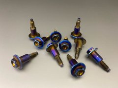 純正部品では抑えきれないキャリパーの開きを抑え、パッド及びローターの片減りを無くします。両サイドボルトで挟み込むためキャリパー剛性も向上します。 フロント1台分の4本セットです。 この度、ステンレスメインシャフト+ステンレスカラー+チタンボルトで構成していた部品をチタンメインシャフト+チタンカラー+チタンボルトに変更アップグレードしました。重量はステンレスシャフトの時が1本107.7g、リニューアルしたフルチタンバージョンが65.7gです。因みに純正スーチルシャフトは109gでした。