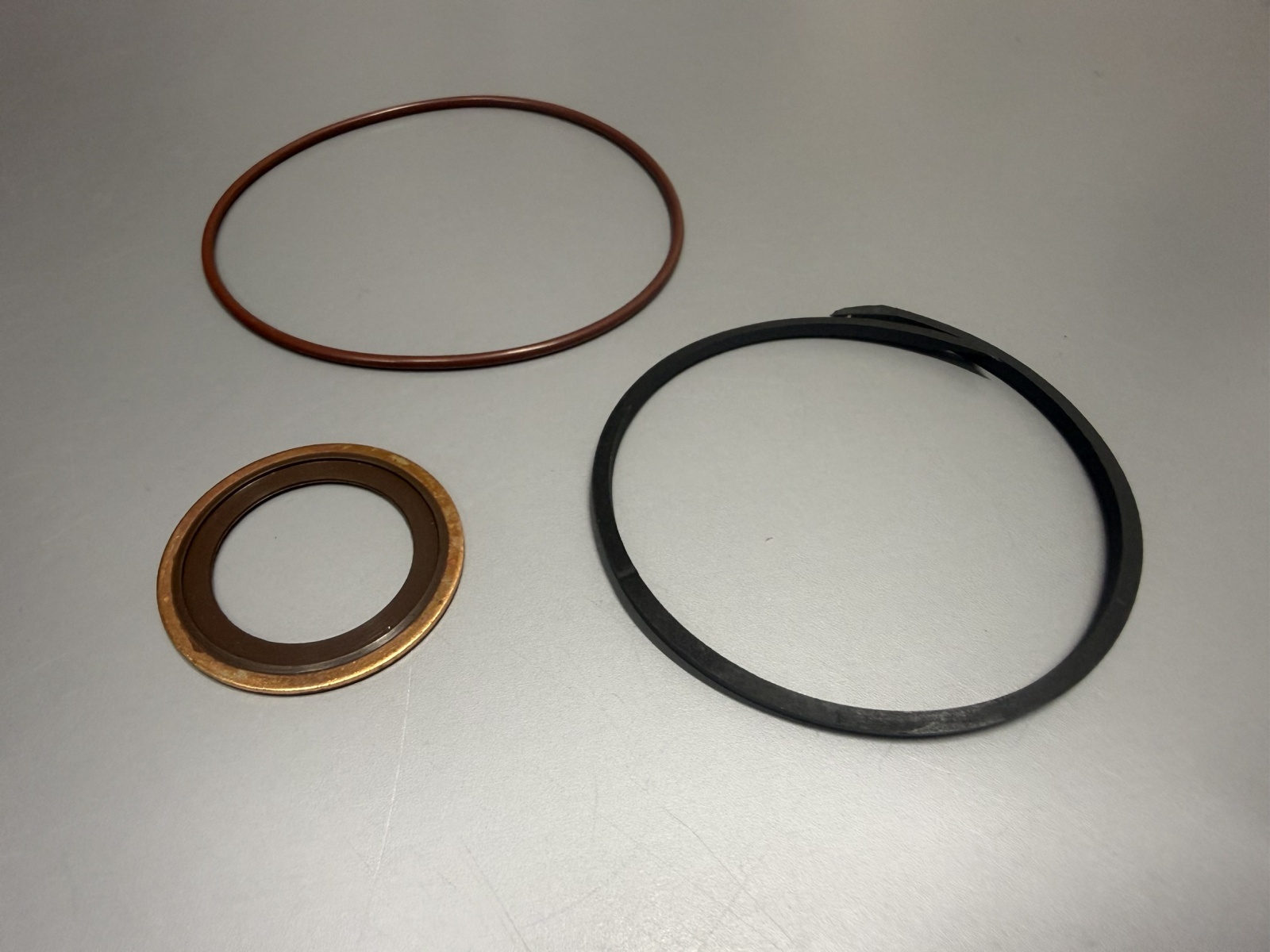 Oリング(FKM製)、オイルサポートリング(PTFE製)、シールワッシャー(FKM+銅製)の3点セットになります。