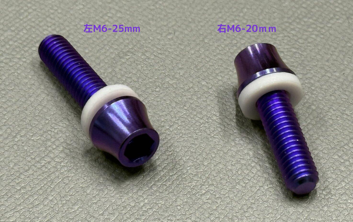 M6x20mm/25mmテーパーヘッドチタンボルト(テフロンワッシャー付き) 1本 紫青色