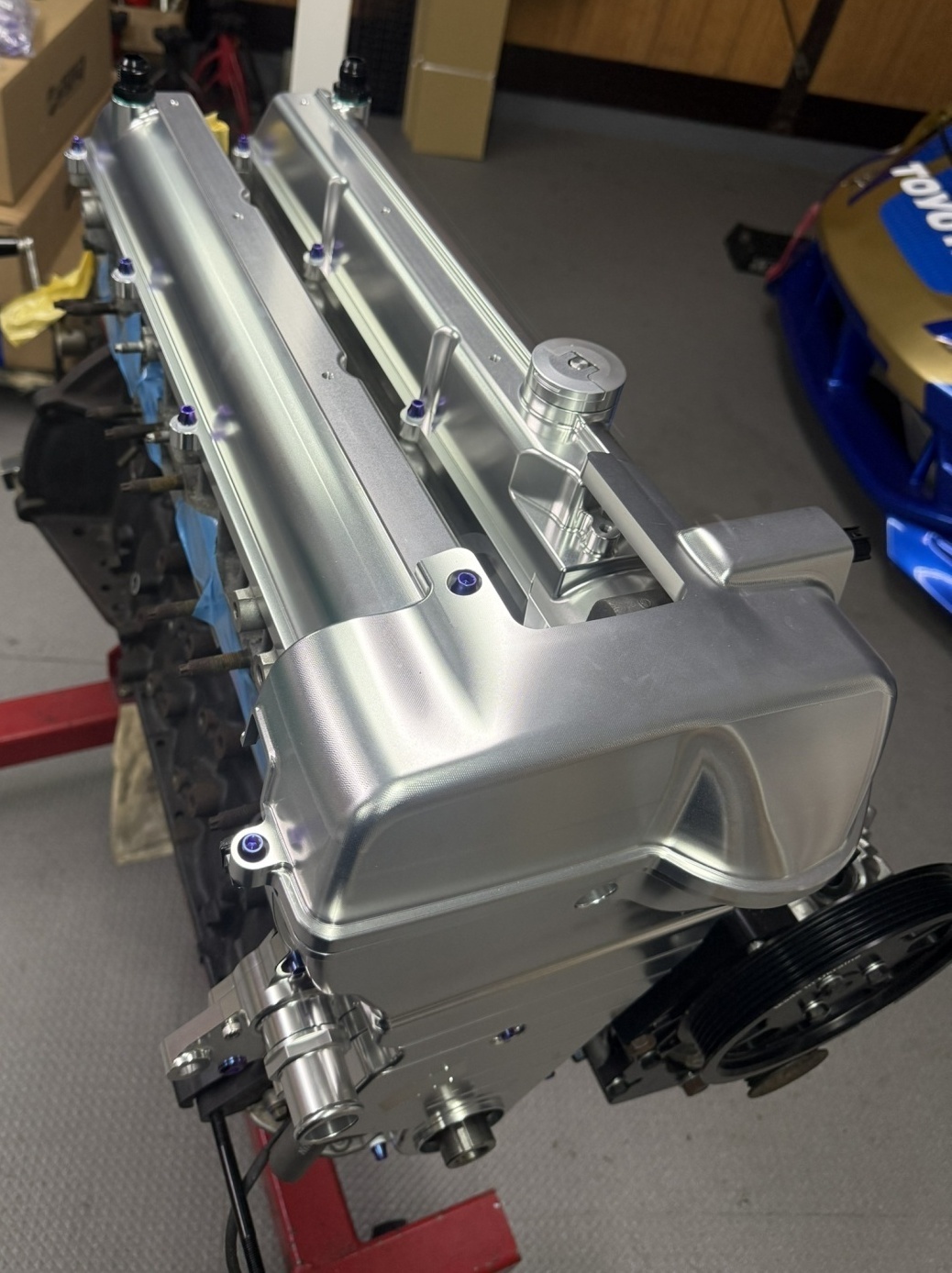 2JZGE VVTiビレットフロントカバー20mmにビレットカムカバー25mmを使用しています。