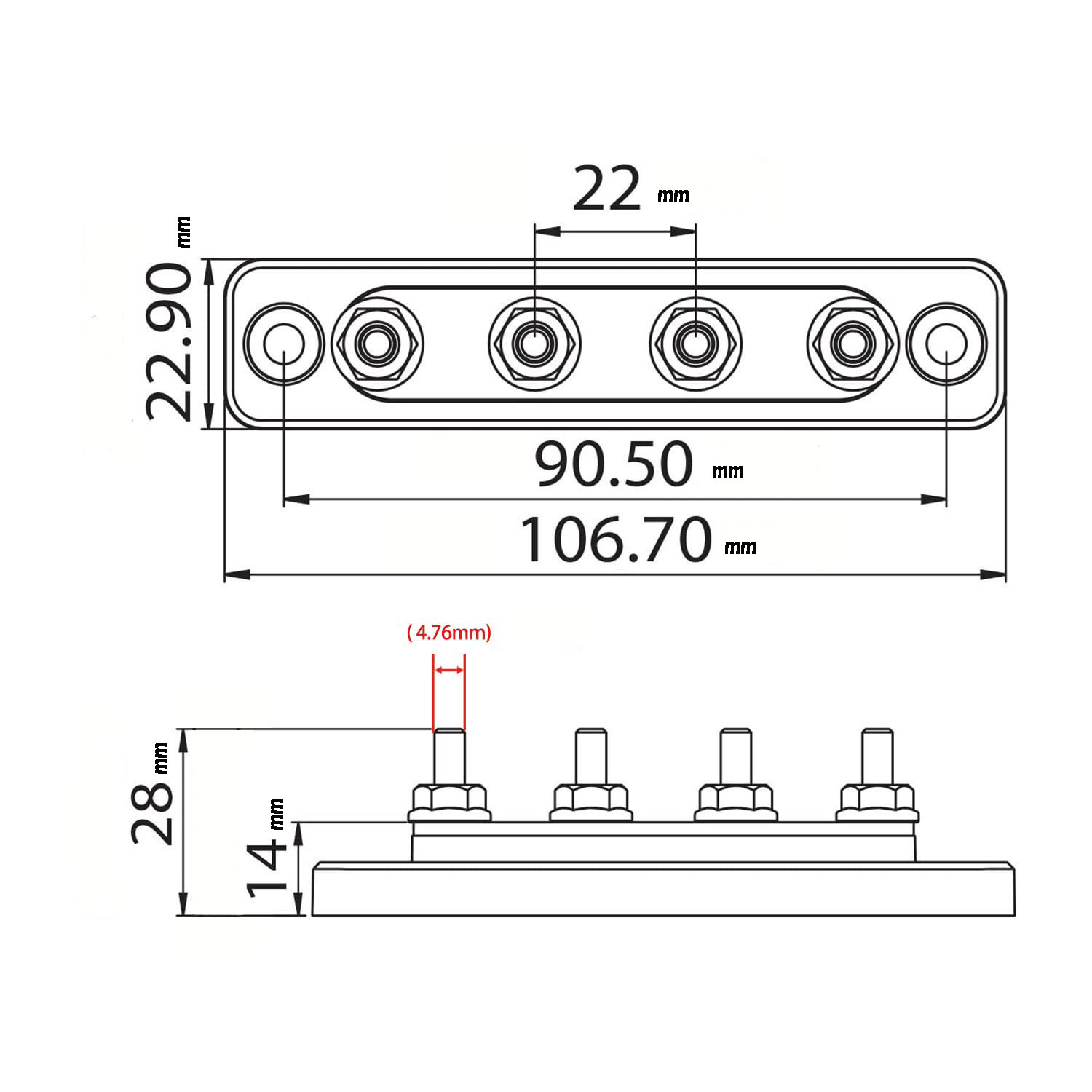 この配電ブロックは、スズメッキ純銅製です。